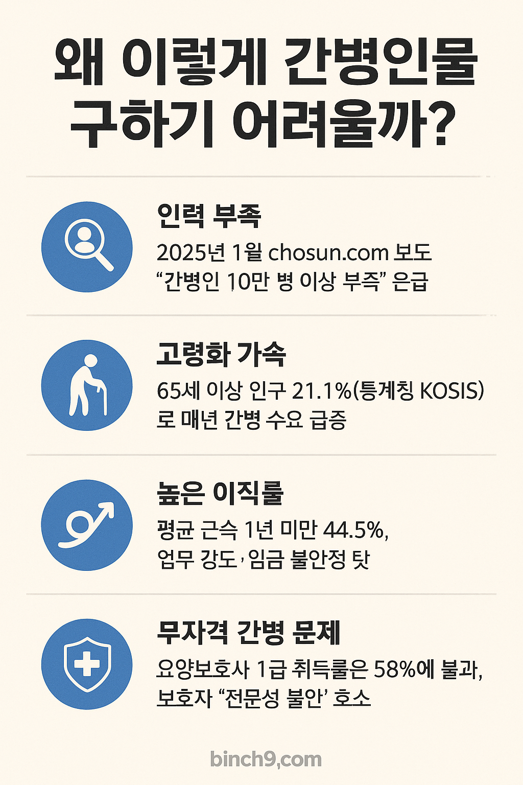 • 인력 부족 : 2025년 1월 chosun.com 보도 “간병인 10만 명 이상 부족” 언급