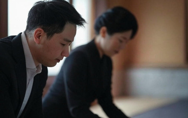 검정 또는 어두운 색상의 정장을 착용합니다. 화려한 색상이나 장신구는 피하며, 흰색 완장(완장)을 착용하는 경우도 있습니다. - 조문 절차: