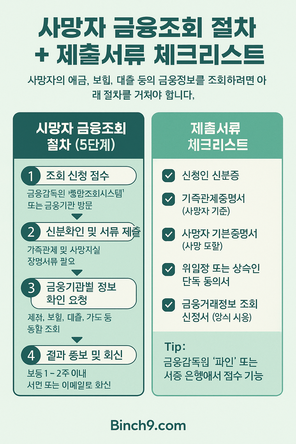 사망자 금융거래 조회는 금융감독원의 '공동조회 서비스'를 통해 유족이 신청 가능.
