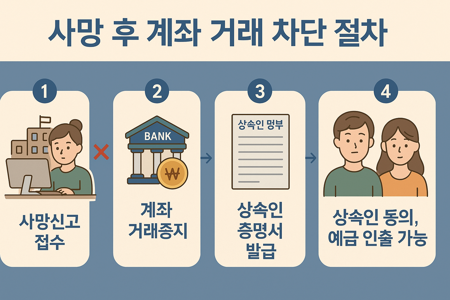 - 통장에 돈이 남아 있어도, 상속 절차 없이 접근할 수 없습니다.