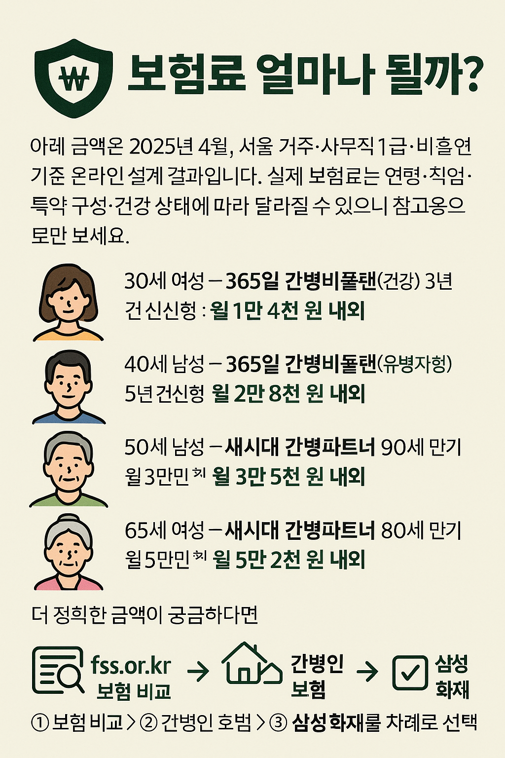 아래 금액은 2025년 4월, 서울 거주·사무직 1급·비흡연 기준 온라인 설계 결과입니다.