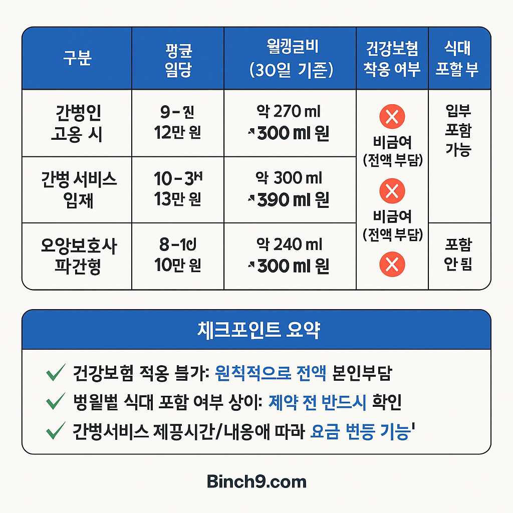 | 월 평균 간병비 | 90만~150만 원 | 30일 기준 계산 |