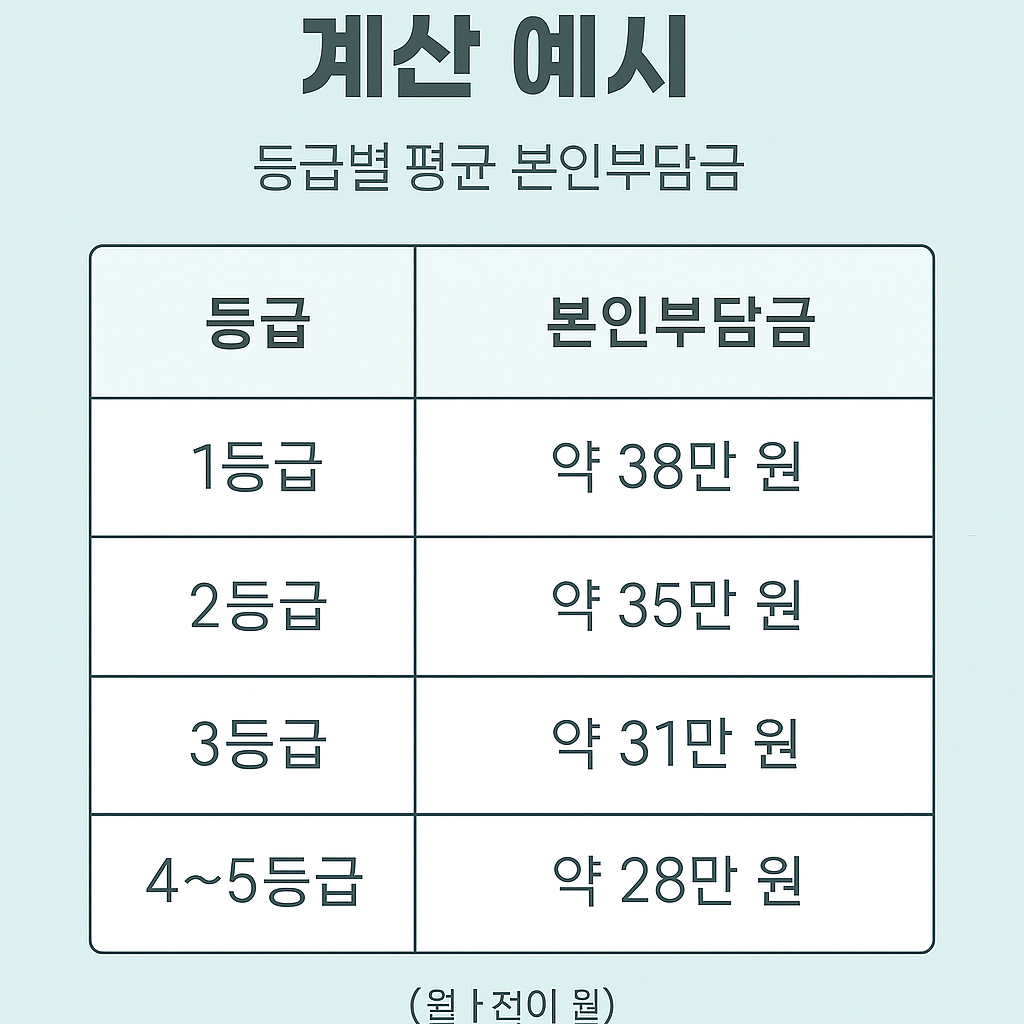 | 등급 | 총 요양비 (지원 전) | 공단 지원금 | 본인부담금 |