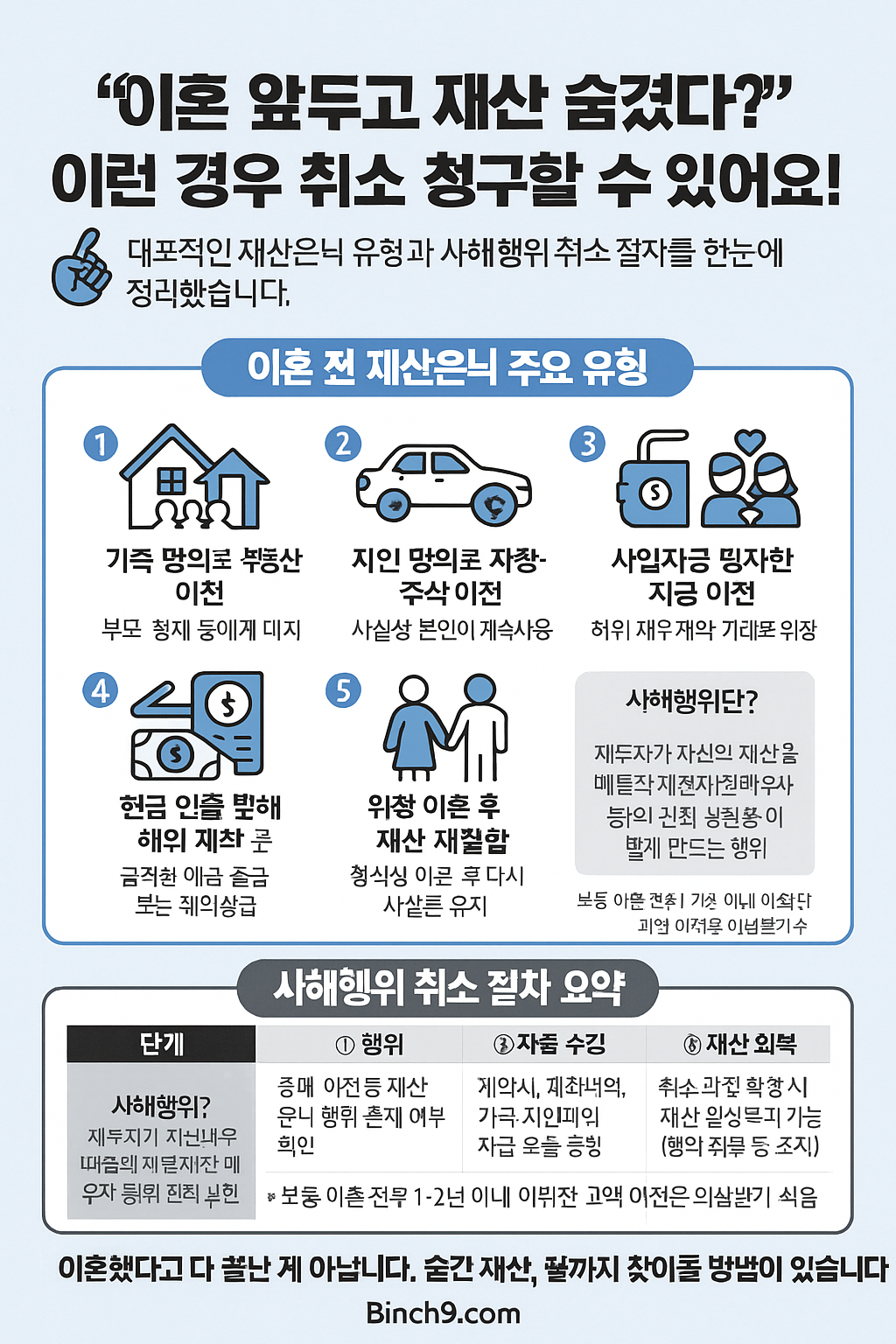 이 글에서는 재산분할과 관련된 사해행위의 개념, 인정 기준, 소송 방법을 쉽게 설명합니다.