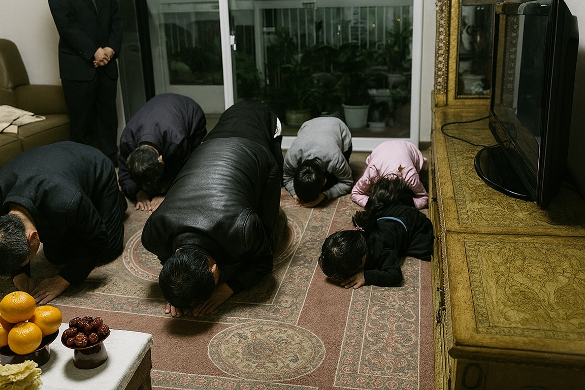 세 번의 술잔을 올린 후 조상님께서 음식을 드시도록 잠시 기다리는 시간을 가집니다. 이때 가족들은 잠시 조용히 앉아 조상님께 감사와 경건한 마음을 가집니다.
