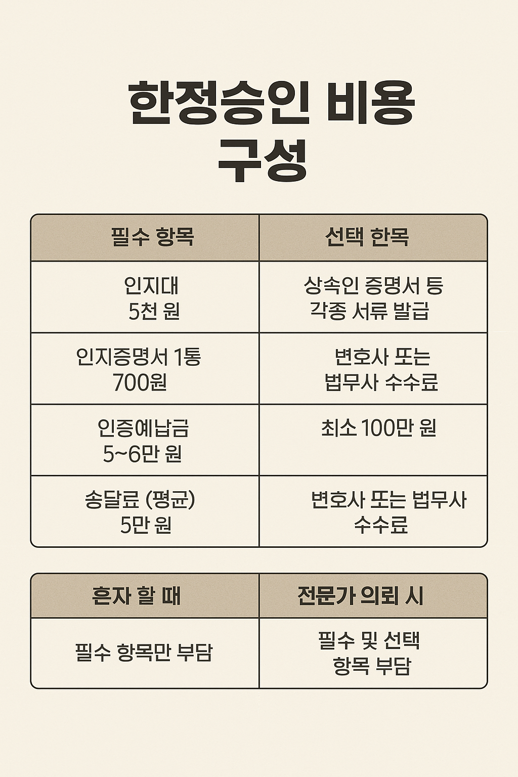 특히 실무 경험이 없는 상속인이라면 비용 구조를 정확히 알고 준비하는 것이 필수다. 이번 글에서는 한정승인 시 들어가는 모든 비용 항목을 구체적으로 정리했다.