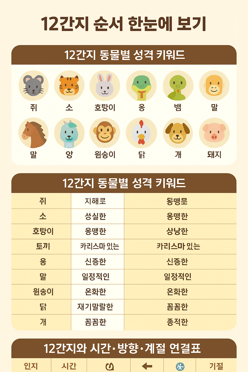 쥐부터 돼지까지 12간지의 순서와 상징, 유래, 현대 활용법까지 쉽게 정리했습니다.
