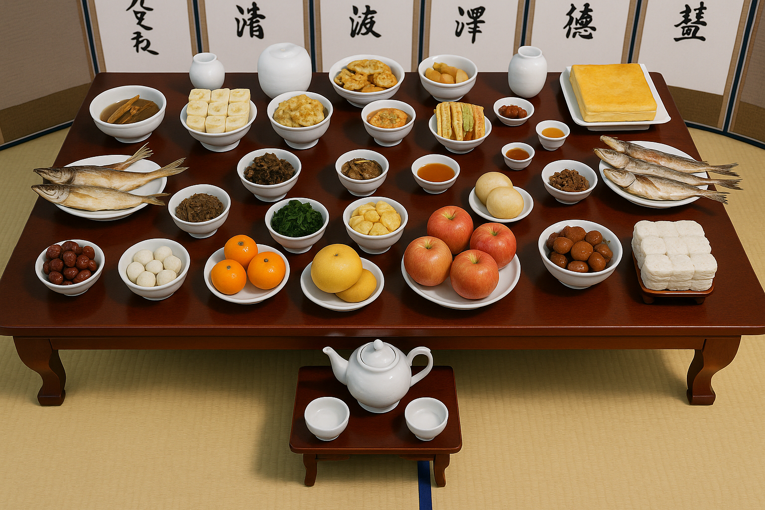 - 불교식 간단 상차림: 과일 3~5종, 나물 3가지, 밥·국, 떡, 차 또는 술 한 잔